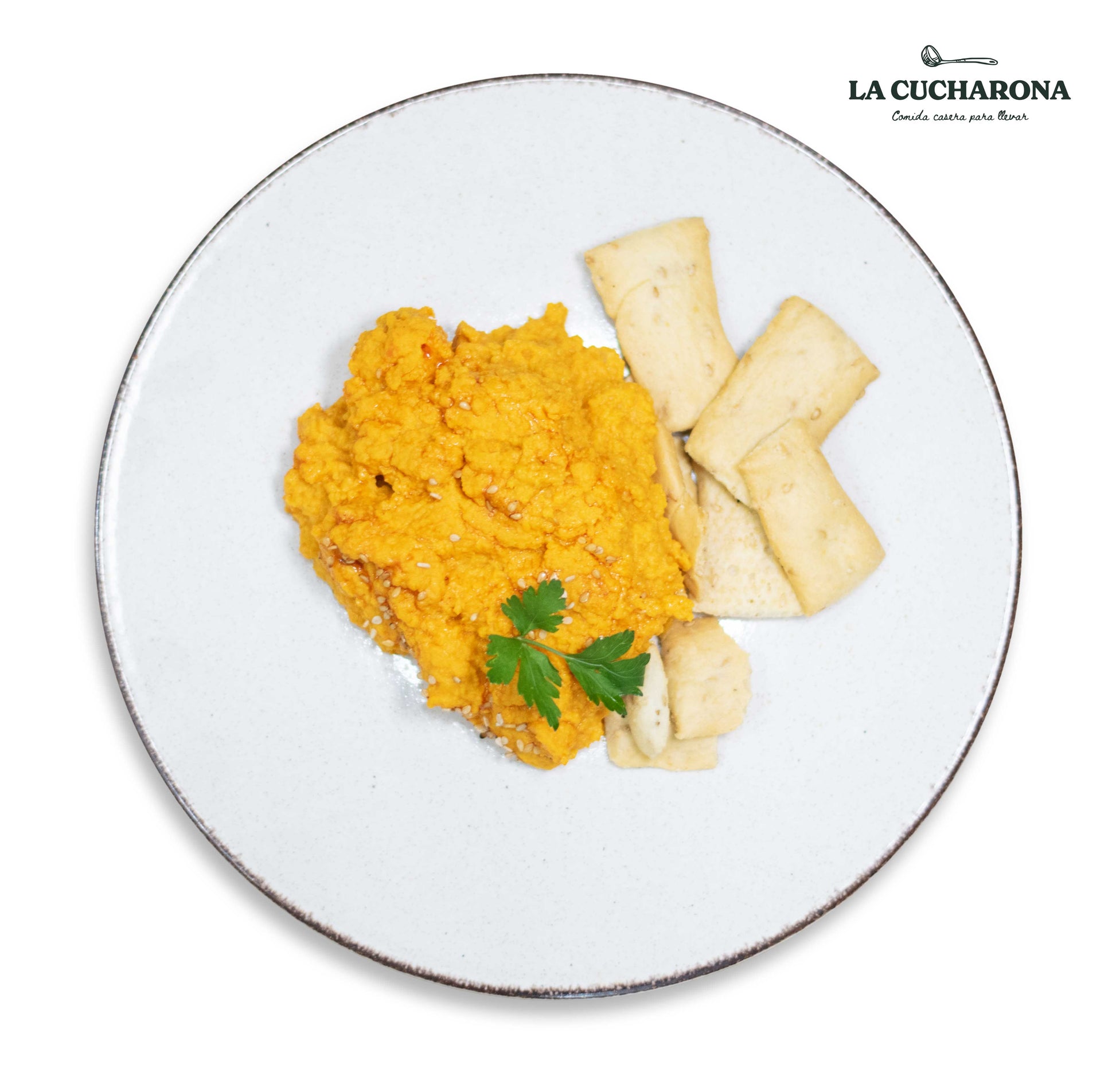 Ingredientes: garbanzos, AOVE, sal, pimentón dulce, ajo y tahini.